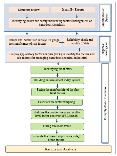 Thus, the health and safety practices in managing hazardous chemicals in hospitals play a significant role in maintaining the safety of both hospital employees and patients. Hospital employees are at varying degrees of risk when handling different types of chemicals while treating patients in the hospital. The laboratory staff, doctors, nurses, equipment technicians, and others are under constant threat while carrying out various activities that involve hazardous chemicals. Education and knowledge of hospital employees regarding health and safety practices are essential to manage their activities without concern. The health and safety practices followed by hospital professionals must, therefore, be gauged to evaluate the criticality of various factors that pose risks to their lives while handling hazardous chemicals [1]. Considering the above risks, it is very important to evaluate the factors affecting health and safety practices in managing hazardous chemicals. There is a lack of studies examining such evaluation and assessment under fuzzy environments; hence, to bridge this gap, the following research question may be proposed: