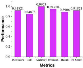 This approach achieved 99.71% segmentation accuracy and a Dice coefficient of 91.85%.