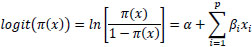 where π(x) = probability that a man will have diabetes, α is the intercept, βs are slope parameters, and Xs are explanatory variables for the model.