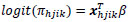 An alternative formula for the survey logistic regression model can be written as: