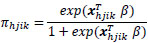 The survey logistic regression for a dichotomous dependent variable Yhji, i=1,...,nhj, j=1,...,nh, h=1,..., H, where h is the stratum, j is the cluster, and i is the household. Suppose that πhjik = P (Yhjik=1|Xhjik), is the probability of having diabetes. The survey logistic regression model is then expressed as: