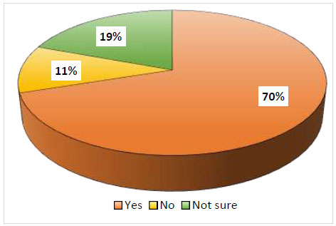 Figure 2 shows that the majority of people (70%) perceived a worsening of air quality over the past year, while 19.4% were not sure and 10.6% reported no worsening of air quality in their area. The mean response is 1.49, indicating that most participants perceived a decline in air quality. However, this awareness didn’t consistently translate into protective behavior, as shown in Fig. (3). Participants were inquired about the frequency of using a face mask or an air purifier to protect against air pollution on a 5-point Likert scale ranging from 1 (Never) to 5 (Always). A larger proportion of the participants responded Rarely (31.9%), followed by Occasionally (23.8%). Only 11.9% of participants declared “Always” using protective measures such as a face mask or an air purifier. The mean response was 2.78 (SD = 1.24), suggesting that participants, on average, adopted infrequent protective measures. This relatively low average is concerning, suggesting a general lack of consistent protective behavior against air pollution.
