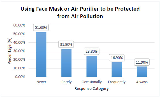 5-point likert scale to check the frequency of using protective gears (face masks or air purifiers) as a prevention from air pollution consequences.
