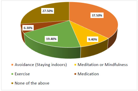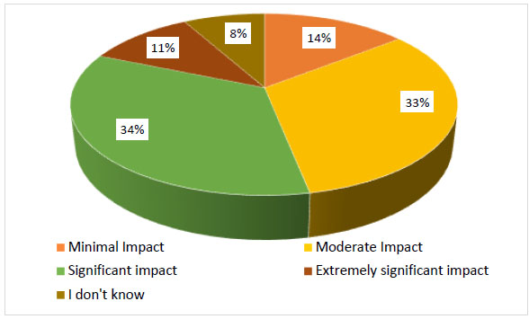 Figure 4 shows that the mental health impact of air pollution emerged as a significant concern. Participants were asked to rate the overall impact of air pollution on their mental health, compared to other stress factors (like work, personal life, etc.) on a Likert scale ranging from 1 (Minimal impact) to 5 (I don’t know). The majority of respondents selected significant impact (34.4%) or moderate impact (32.5%) of air pollution. Only 8.1% of participants reported “I don’t know”, indicating their uncertainty about the impact of air pollution on their psychological health. The mean response was 2.66 (SD = 1.10), suggesting that, on average, participants perceived the impact of air pollution as moderate to significant, with a slight tendency toward the moderate end. The relatively high proportion of participants reporting moderate to significant effects shows a concerning trend regarding the psychological burden of air pollution.