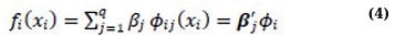 A smoother is a useful tool that helps to summarize the trend of a response measurement based on one or multiple predictorvariables, x1,…, xp. It calculates an estimate of the trend that has less variability than the response variable itself. The most important feature of a smoother is that it is non-parametric, which means that it assumes a flexible form for the relationship between Y and x1,…, xp. In their work, Hastie and Tibshirani [37] briefly discussed the concept of smoothers. When dealing with additive models, it is crucial to have a way to represent smooth functions. According to Hastie and Tibshirani [37], a good approach is to use spline-like penalized regression smoothers. Spline smoothing allows for the description of smooth functions in a way that turns expression (3) into a linear model. This is accomplished by defining a set of basis functions 𝜙ij for each function, which allows the smooth function to be represented as follows: