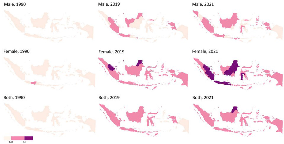 The authors are very grateful to the Institute for Health Metrics and Evaluation (IHME) for providing the 2021 Global Burden of Disease data free of charge for scientific publication purposes. The authors want to express their gratitude to the Doctoral Program in Public Health, Faculty of Public Health, Universitas Airlangga, for granting permission and the opportunity to conduct this study.