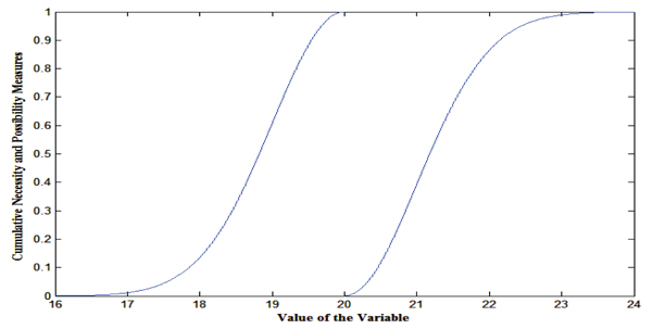 On the other hand, possibility theory has the ability to handle uncertainty arises due to due to lack of precision, deficiency in data, diminutive sample sizes or data acquire from specialist opinion or subjective construal of existing data or information. If representations of model parameters are fuzzy numbers then cumulative necessity and possibility measures can be obtained (section 3.2) and accordingly risk assessment can be computed using sampling technique [19]. In this process, first need to consider all the input fuzzy numbers and convert them to cumulative necessity and possibility measures. In the next step, need to generate random numbers from [0, 1] and perform Monte Carlo simulation to obtain random numbers by sampling possibility distribution which will produce close intervals. Assigning all the closed intervals in the given risk model will generate a closed interval. Proceeding in this way for other uniformly distributed random numbers (say, N times), N numbers of closed intervals will be obtained. Plotting Cumulative Distribution Function (CDF) by considering all the initial points and end points of the closed intervals separately will produce a pair of cumulative necessity and possibility measures form which risk values can be evaluated at different fractiles.