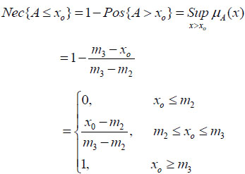 to [0,1] which is, unimodal and upper semi-continuous is called a possibility distribution π. It speaks the more or less plausible values of uncertain variable. Also, it can be expressed by two evaluations: possibility ∏ and the necessity N which can be defined as [28, 29]
