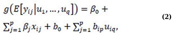 where a variable yij,i = 1,…,n, j = 1,…, p is the outcome of interest. The distribution of yij is determined by a set of covariates, represented by random effects (u1,…,uq), and belongs to the exponential family. The explanatory variables, xij, are fixed and describe the effects of the predictors, and the relationship between the response and predictors is determined by the link function g(·), which relates the conditional mean of the response to the predictors [1]. Information on GLM, LMM, and GLMM is widely available in the literature [22-29].